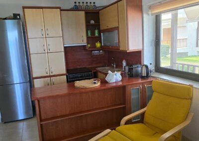 • Veliki frižider, šporet sa ravnom pločom i rernom, aspirator, aparat za kafu, kuvalo