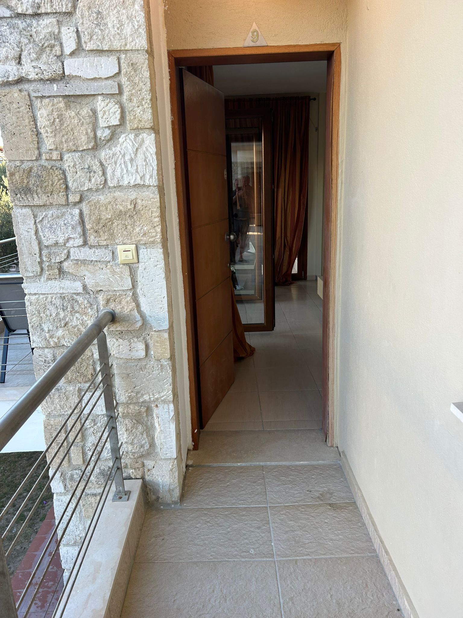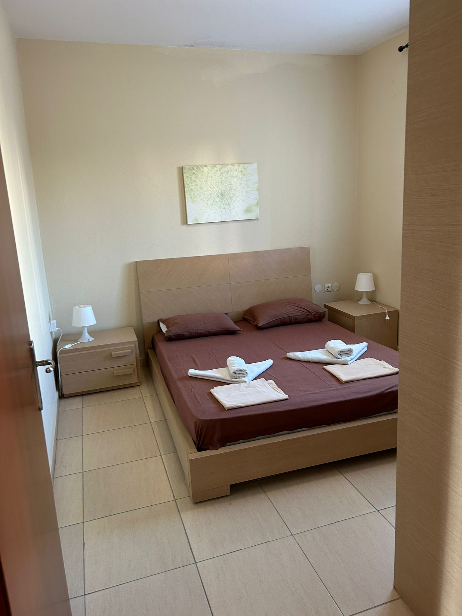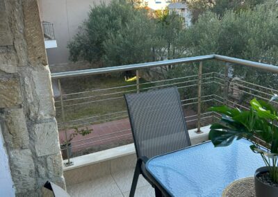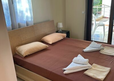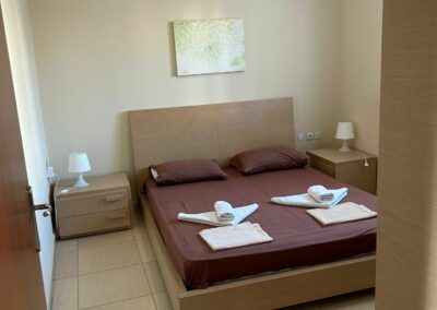 Nalazi se na prvom spratu i poseduje dnevni boravak sa trpezarijom, kompletno opremljenu zasebnu kuhinju, 2 spavaće sobe sa francuskim ležajem, 1 kupatilo (tuš sa zavesom, lavabo i wc), tri terase.
