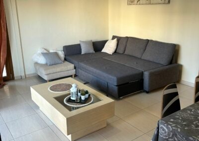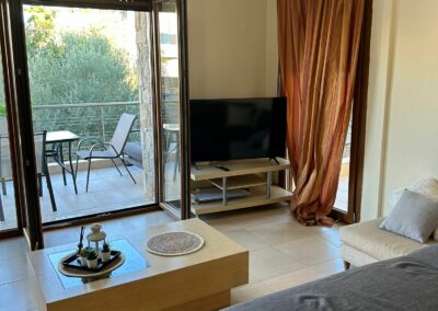 Dnevni boravak ima izlaz na terasu sa stolom i stolicama i pogledom na dvorište. U njemu se nalazi i kauč na razvlačenje za dve osobe.