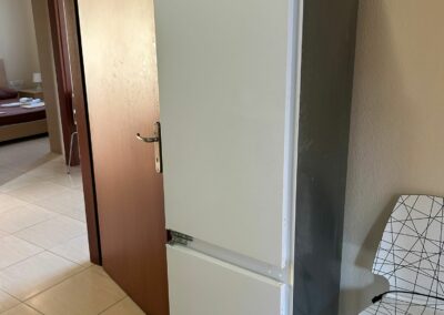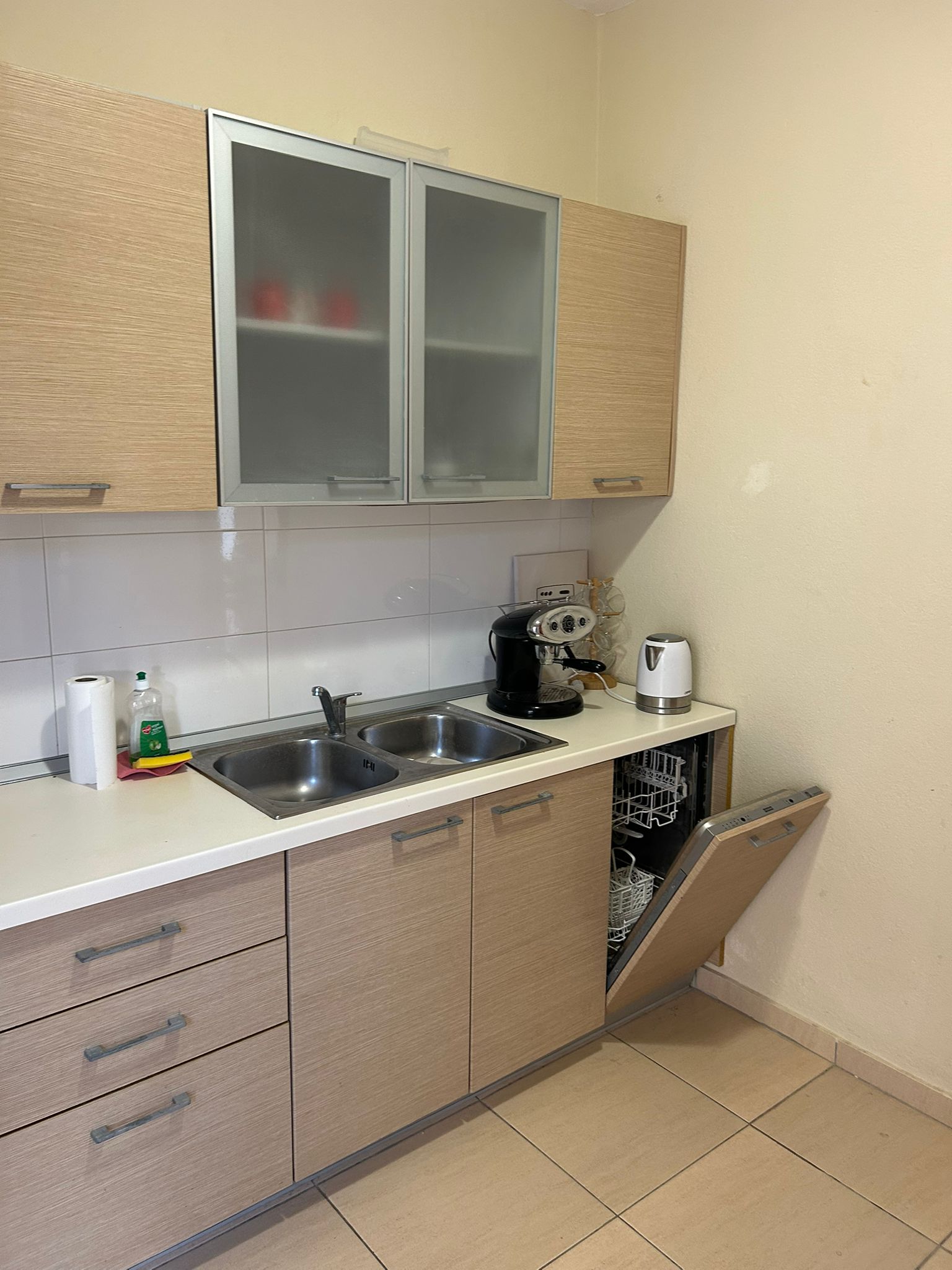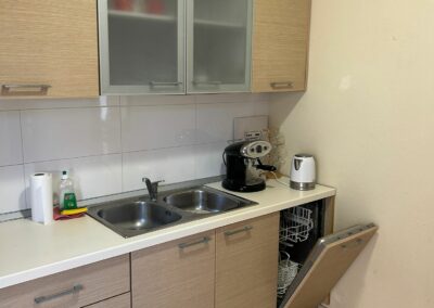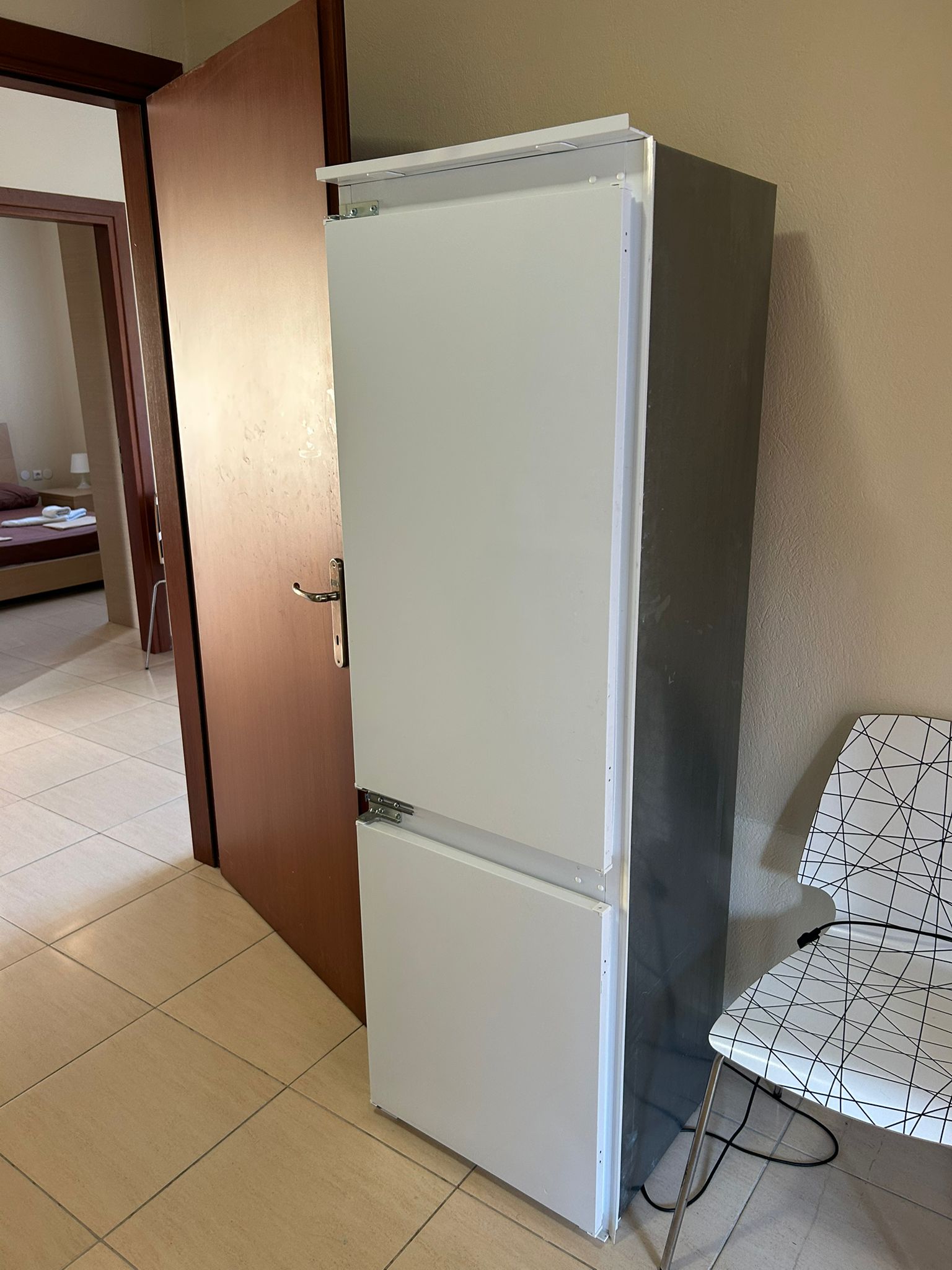• Veliki frižider, šporet sa ravnom pločom i rernom, aspirator, aparat za kafu, kuvalo